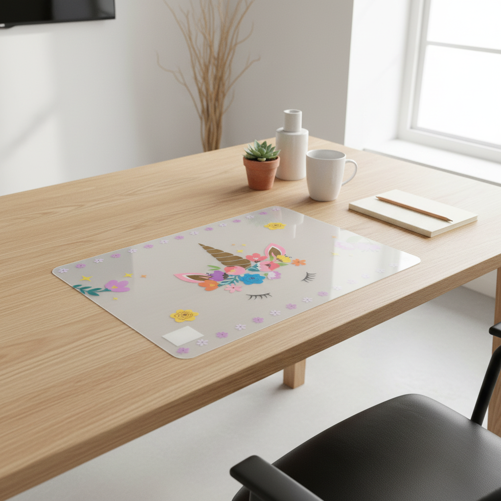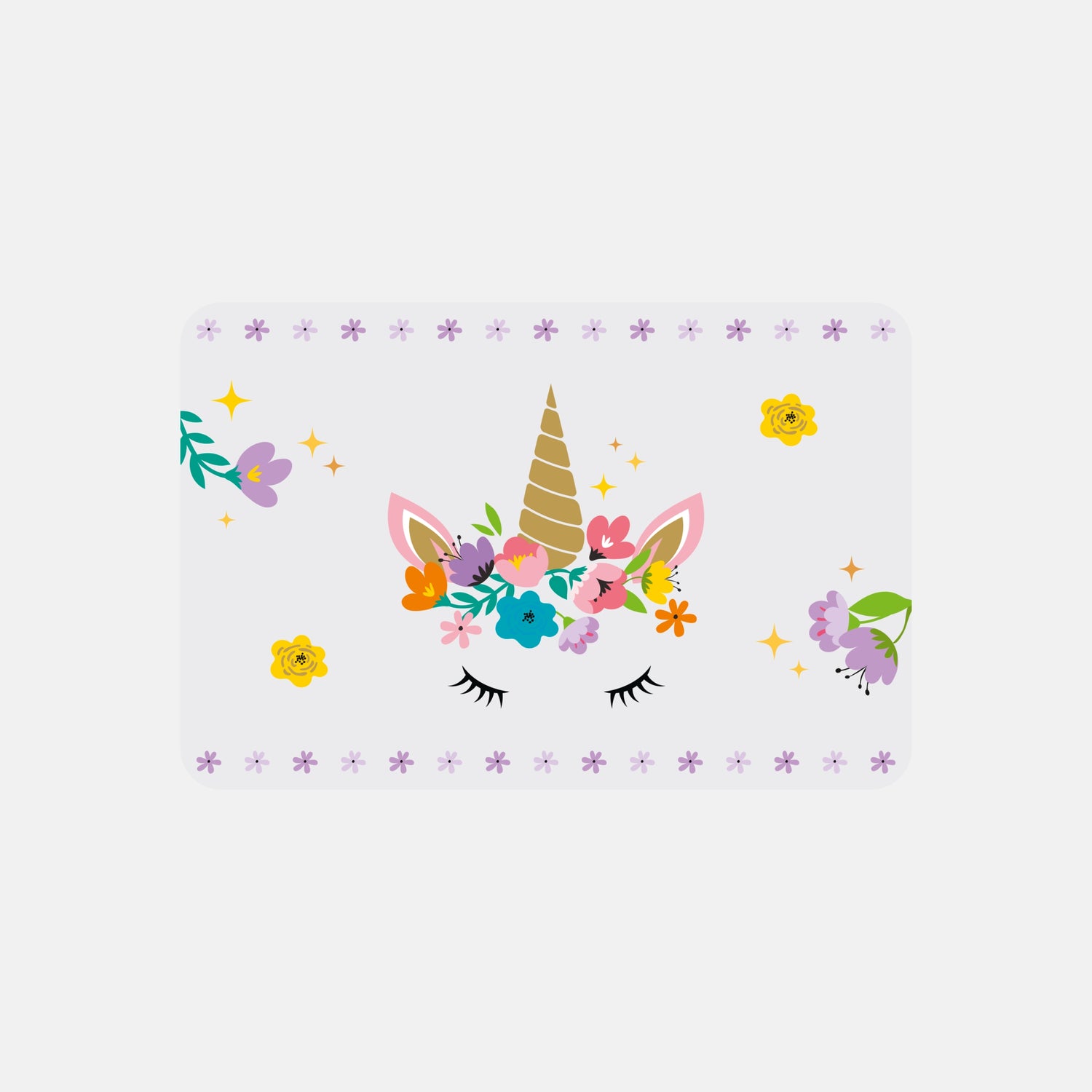 Gjør måltidene litt morsommere med denne transparente bordbrikken med enhjørningmotiv. Den beskytter bordet mot søl og riper og er samtidig enkel å tørke av etter bruk. Perfekt til både frokost, middag og kreative aktiviteter som tegning og lek.