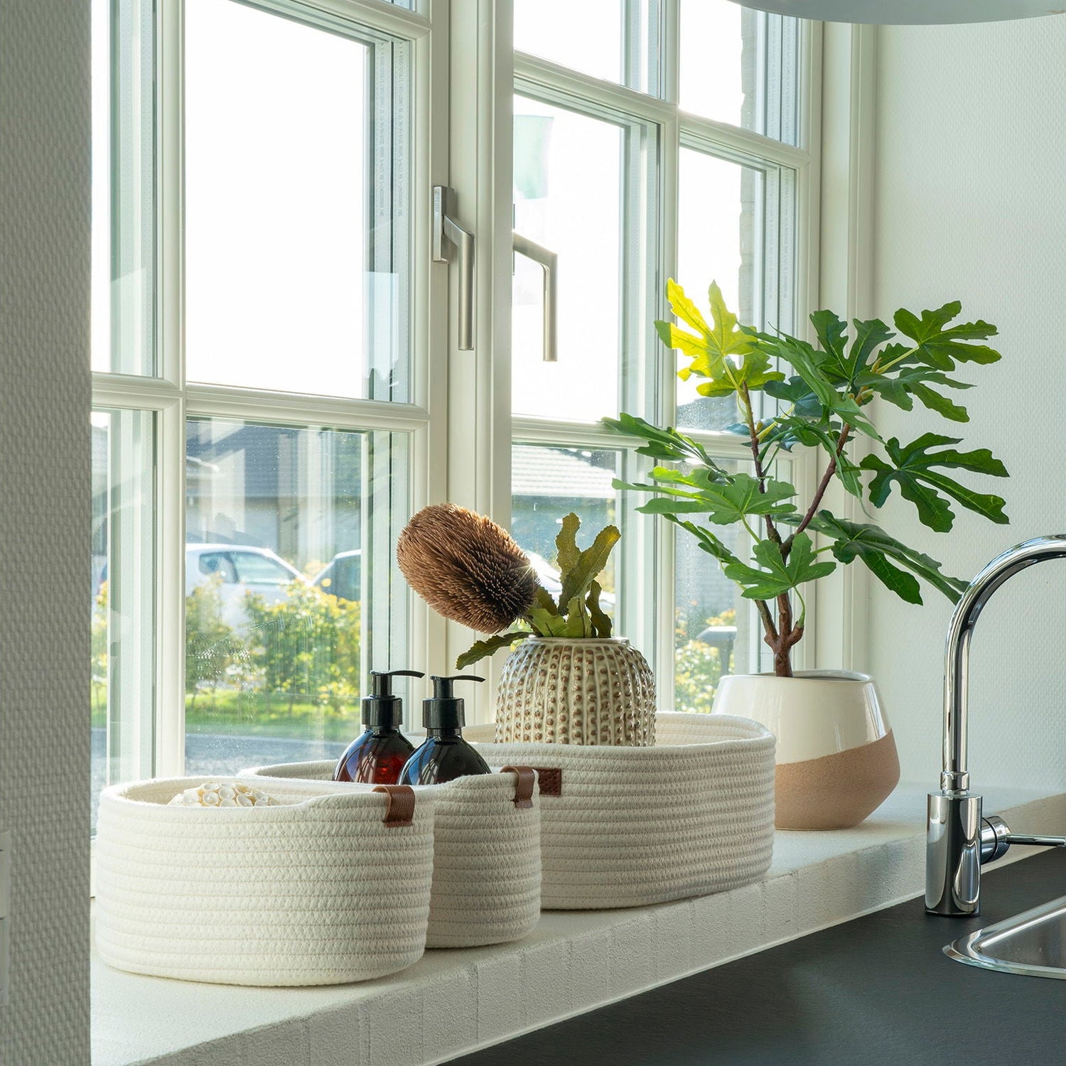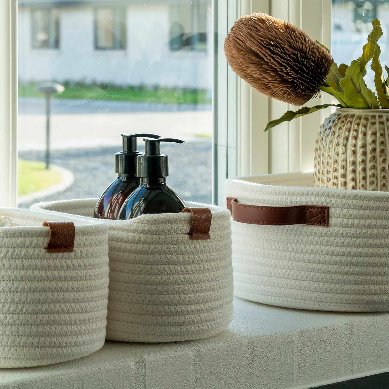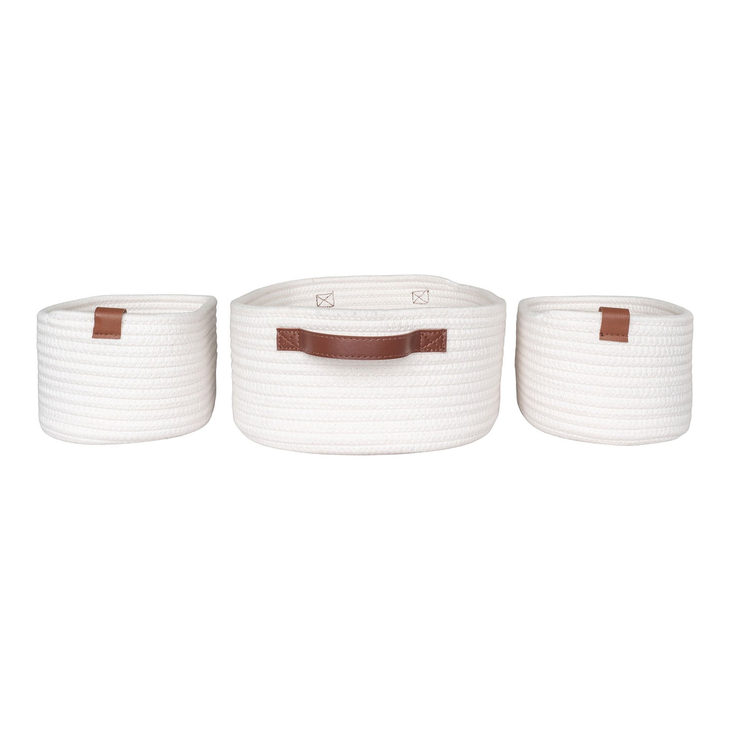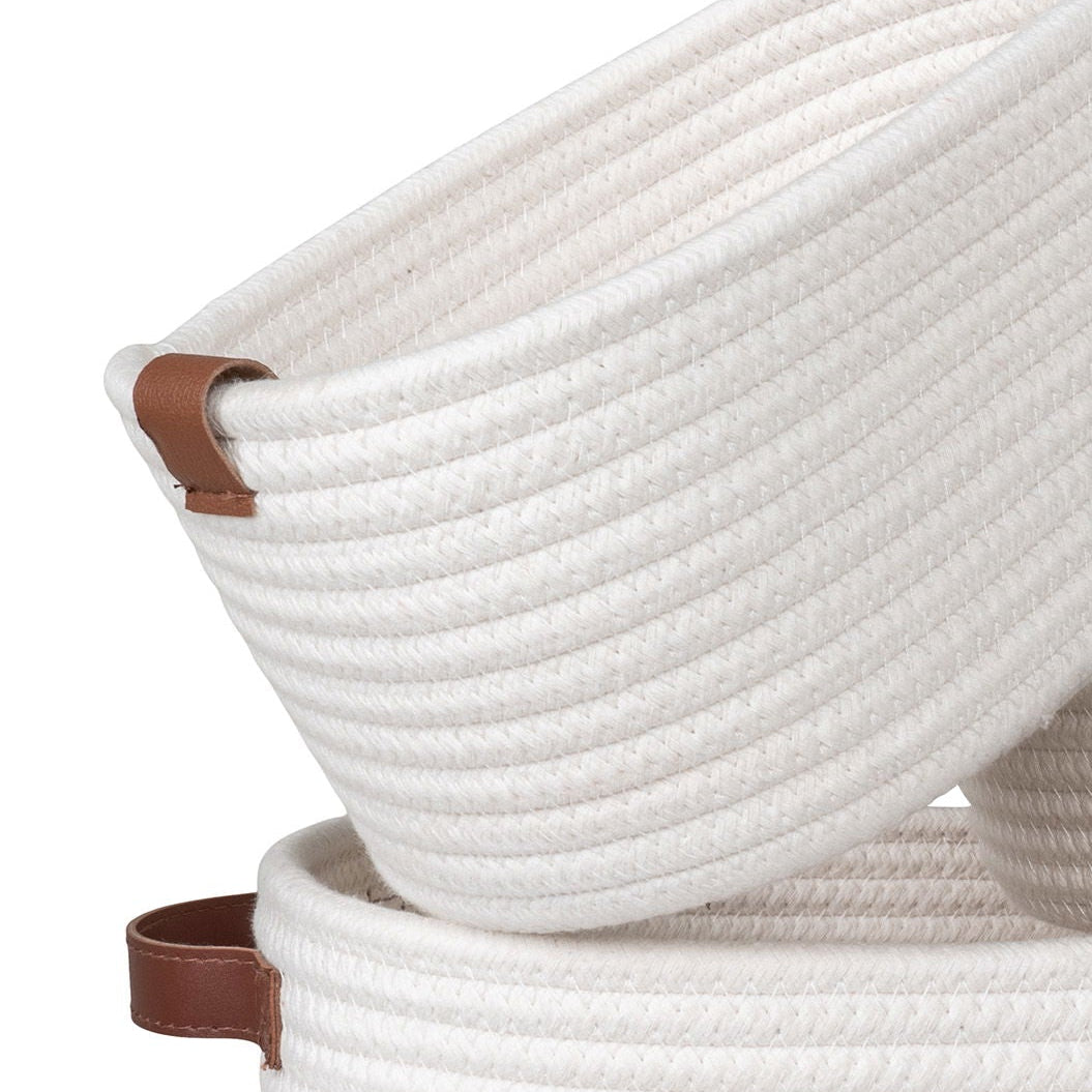 Kurvene kommer i tre ulike størrelser, noe som gjør dem ideelle til oppbevaring av alt fra småting på badet eller garderoben eller vaskerommet. Den nøytrale hvite fargen passer sømløst inn i ulike interiørstiler, enten du liker det minimalistiske, skandinaviske eller mer klassiske uttrykket.