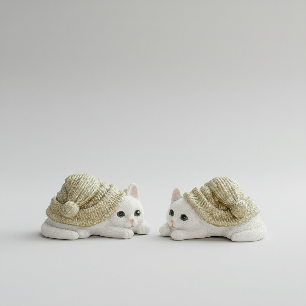 Disse søte kattefigurene i polyresin med grågrønne luer passer perfekt som dekorasjon i hjemmet ditt. Med sitt lekne uttrykk og detaljerte utforming gir de en koselig stemning, enten de plasseres på en hylle, i en vinduskarm eller som del av en borddekorasjon.