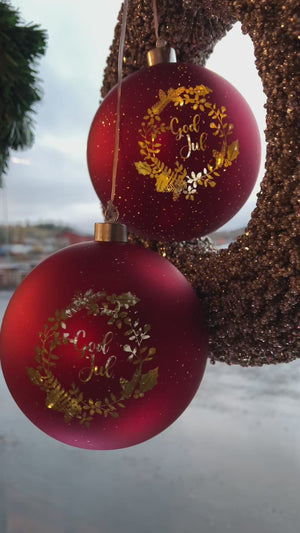 • Farge: Klassisk rød Tekst: "God Jul"