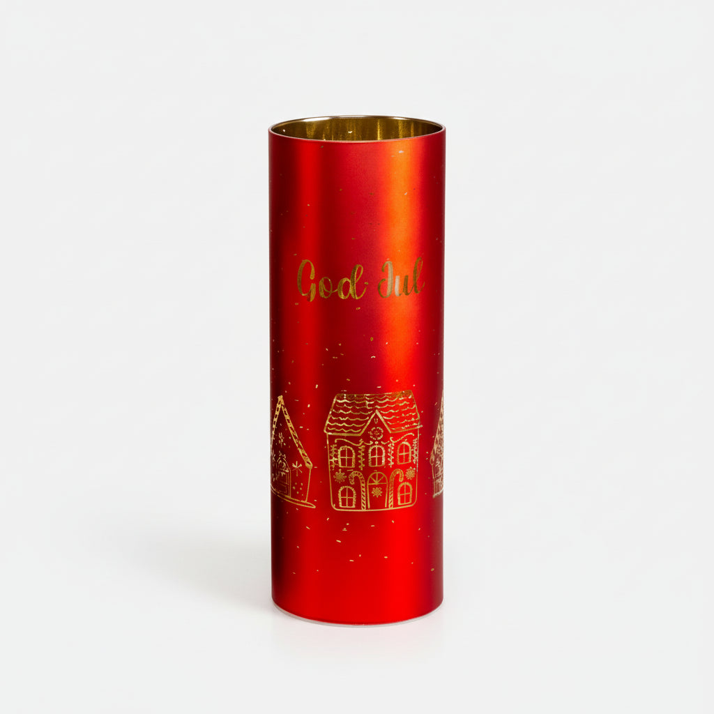 Lyslykt LED Pepperkakeby rød 9 x 25 cm