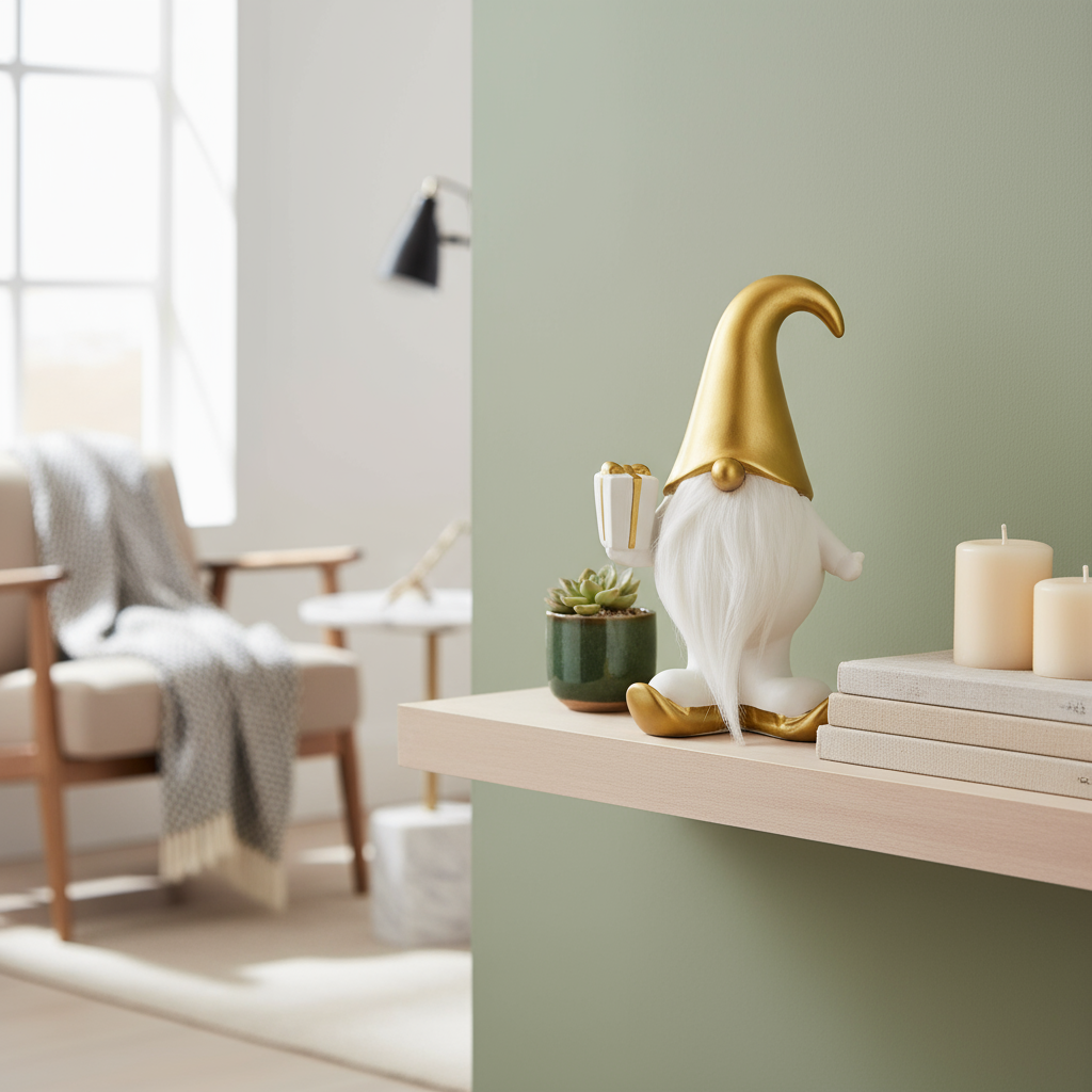Lekker nissefigur i hvitt og gull laget i porselen. Den moderne designen kombinert med klassiske detaljer gjør denne figuren til et perfekt innslag i juledekorasjonen.