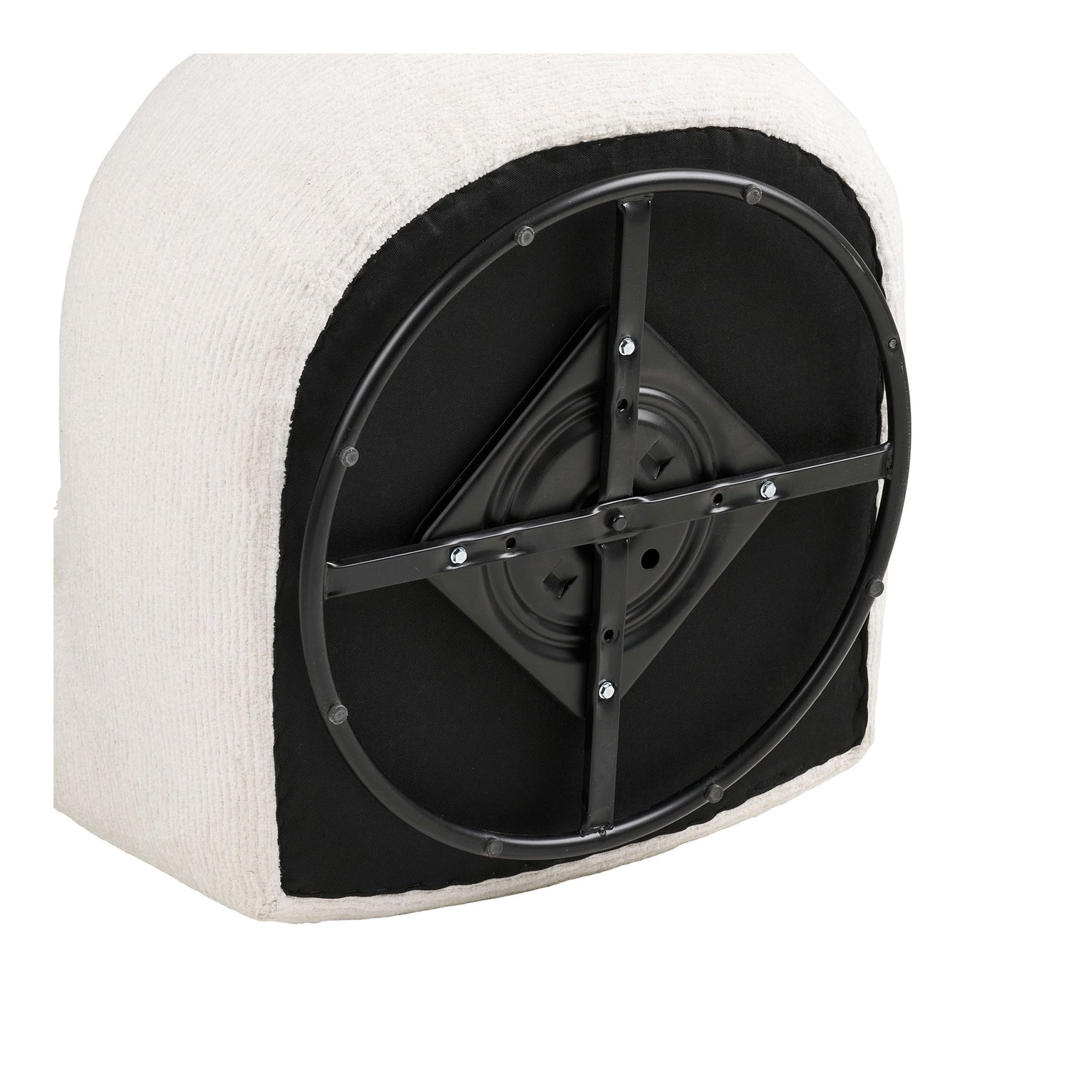 Lounge-stol med svingfunksjon trukket i mykt chenillestoff. Stolen har avrundet form, lav rygg og god sittekomfort.