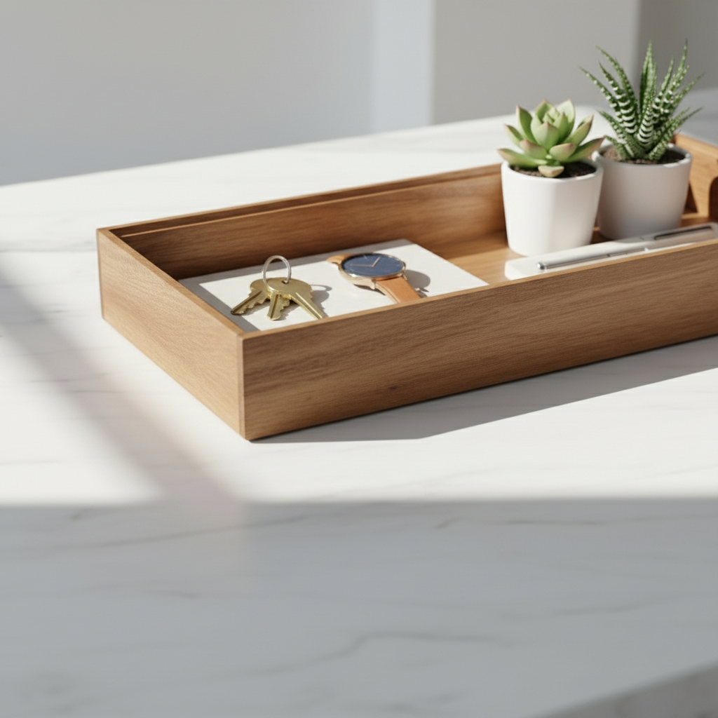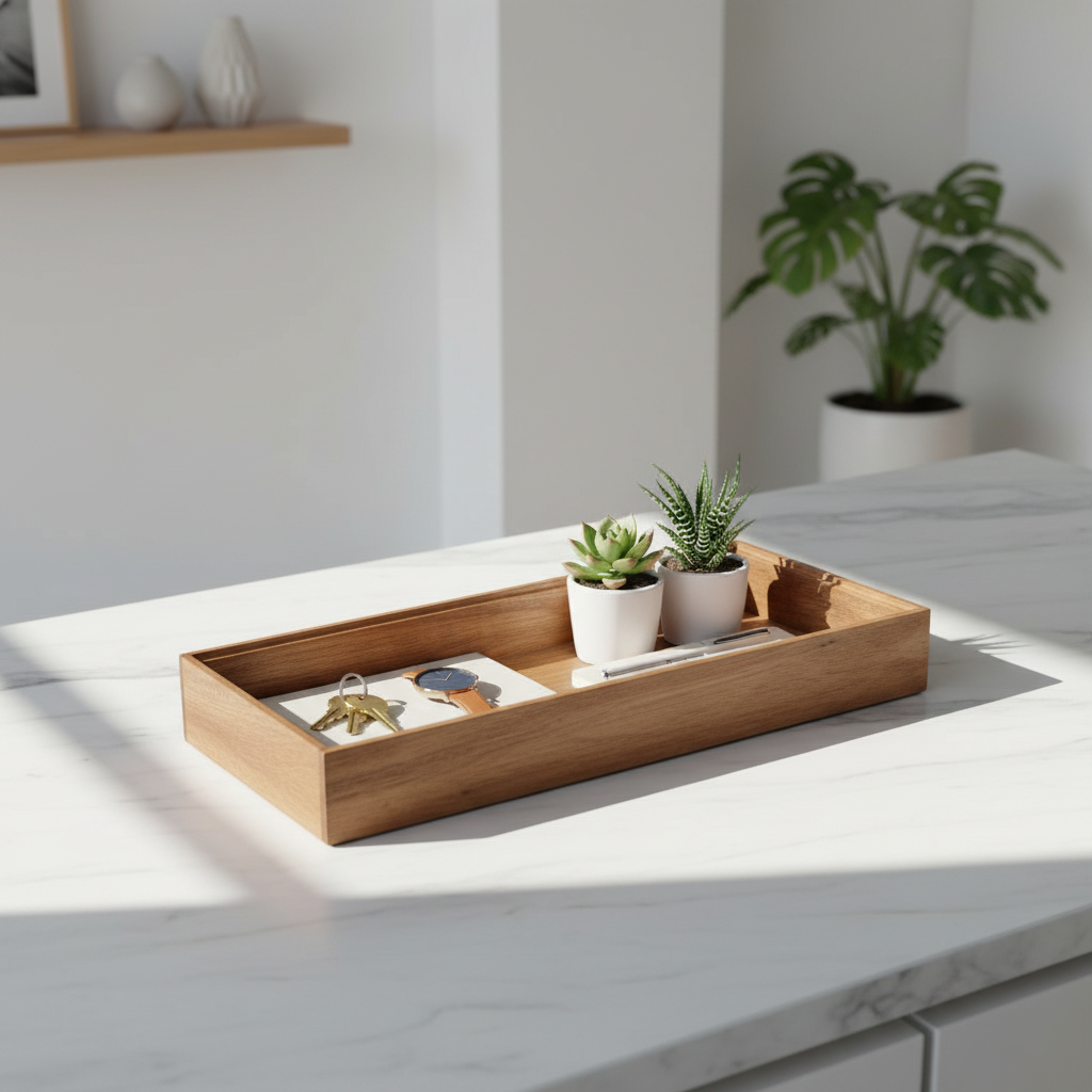 Praktisk og elegant stablebar organizer i akasie som holder orden på småting i hele hjemmet. Med sine kompakte mål på 37,5 x 15 x 5 cm passer den perfekt i skuffer, på hyller eller på benken.