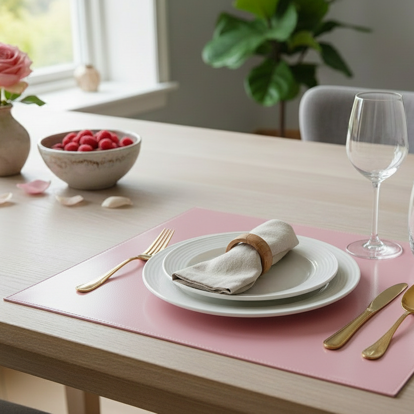 Gi borddekkingen et mykt og harmonisk preg med denne rosefargede bordbrikken. Den glatte overflaten gjør den enkel å tørke av og beskytter bordet mot søl og riper.