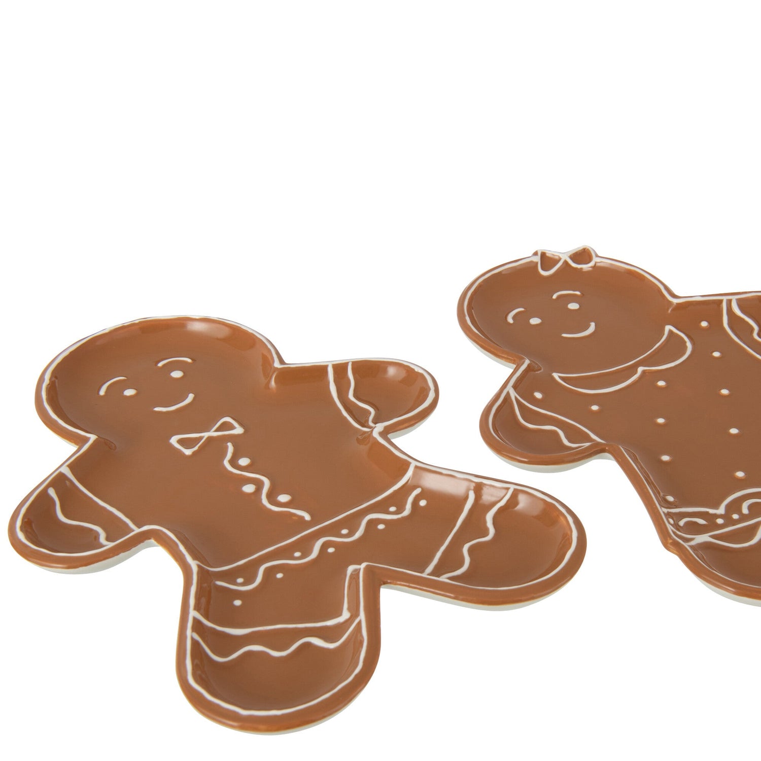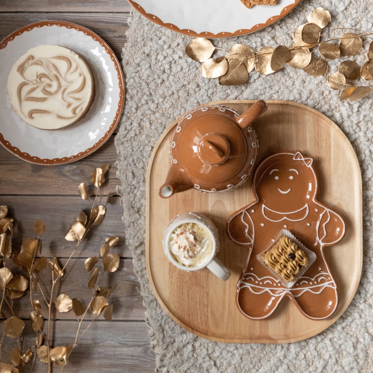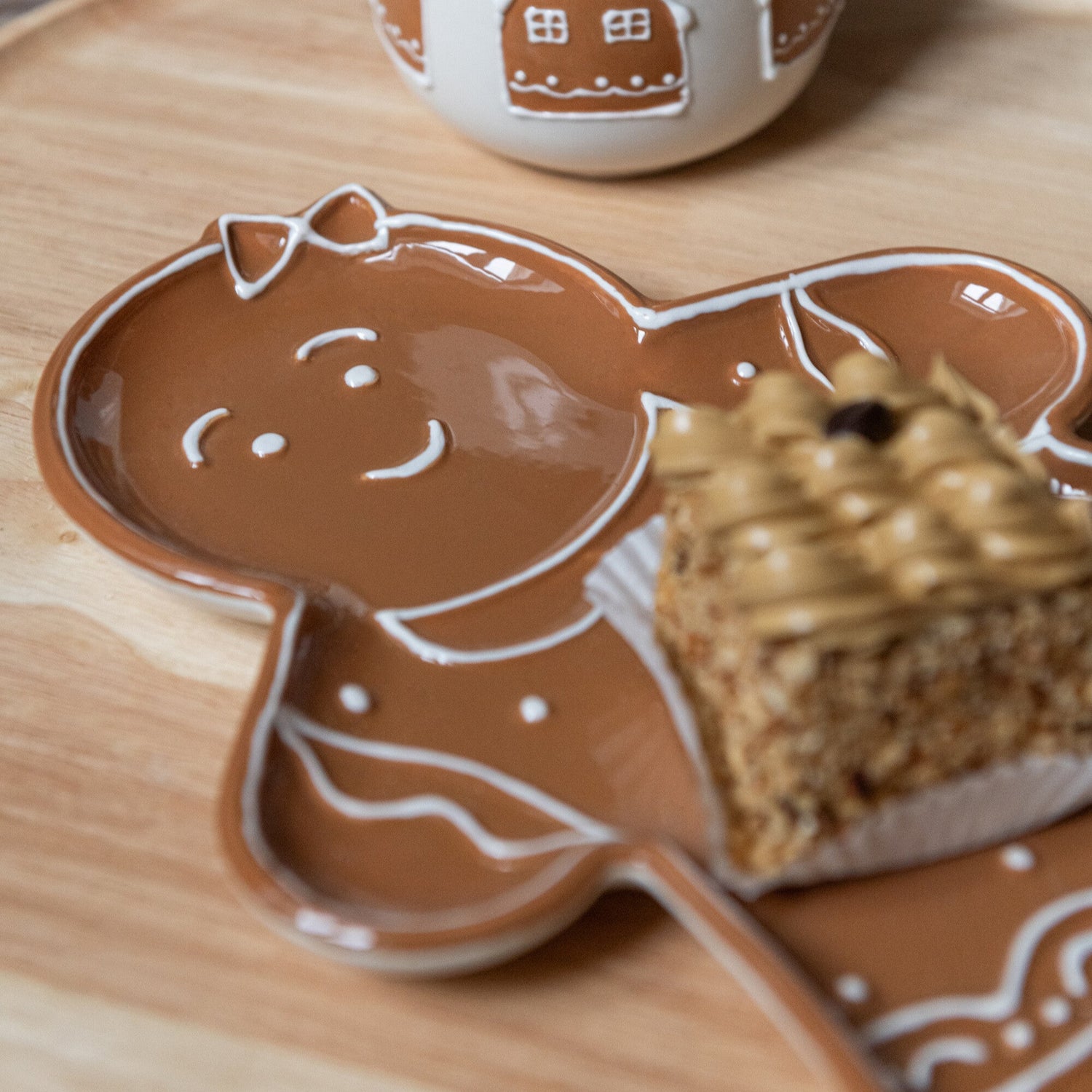 Gjør serveringen ekstra koselig med dette serveringsfatet formet som pepperkaker, i karamellbrun og hvit keramikk. Perfekt til småkaker, konfekt, snacks eller som et dekorativt innslag på julebordet.