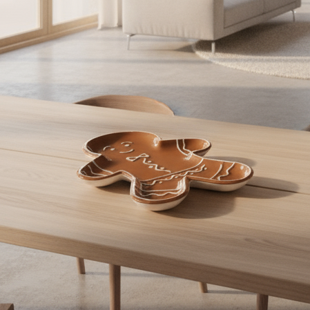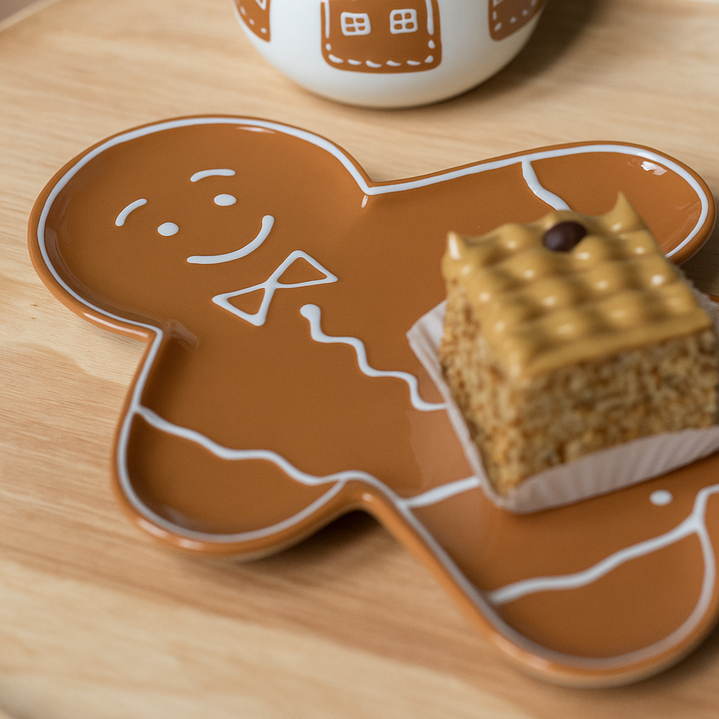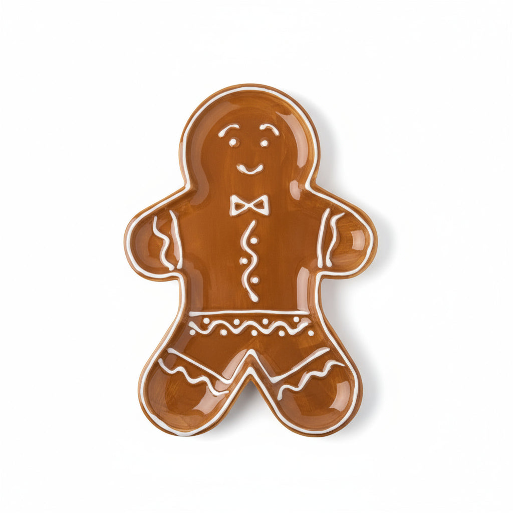 Gjør serveringen ekstra koselig med dette serveringsfatet formet som pepperkaker, i karamellbrun og hvit keramikk. Perfekt til småkaker, konfekt, snacks eller som et dekorativt innslag på julebordet.