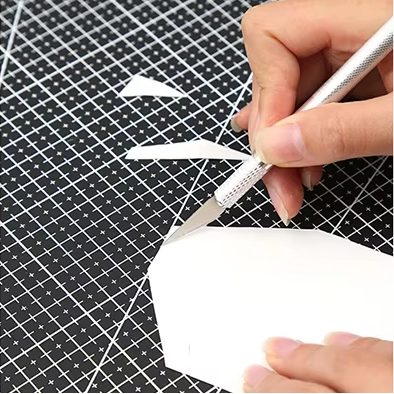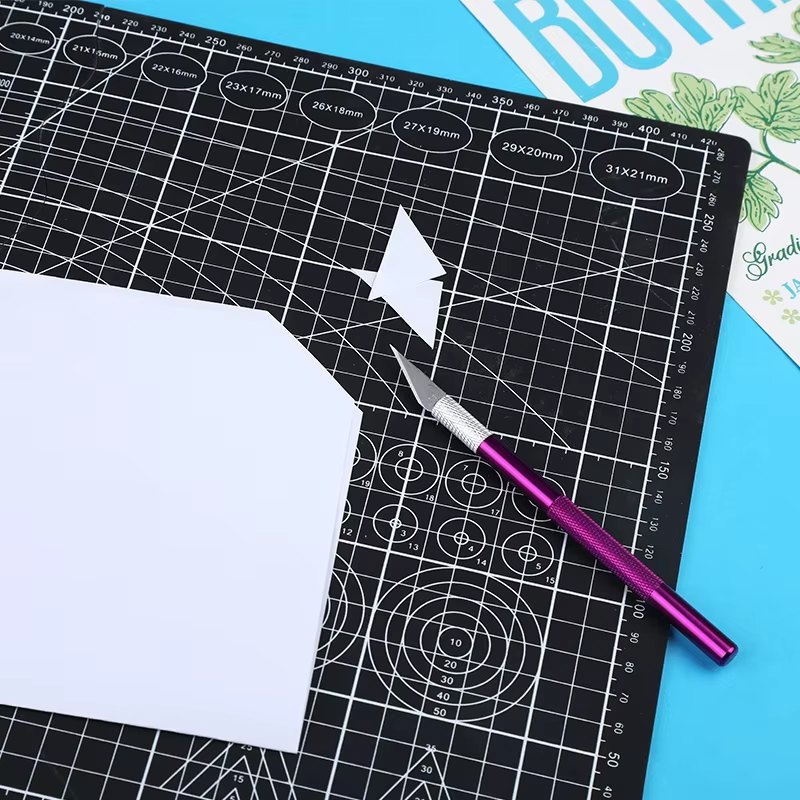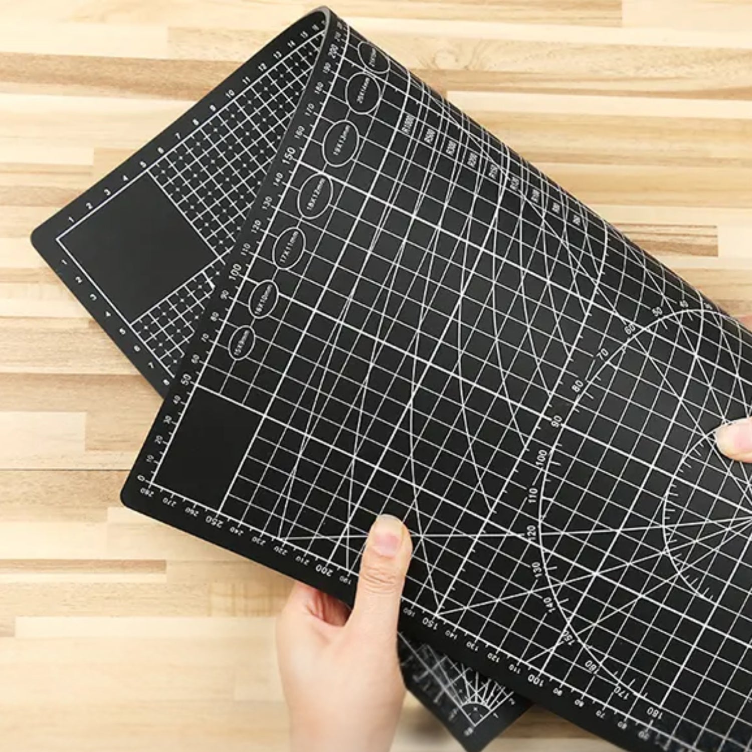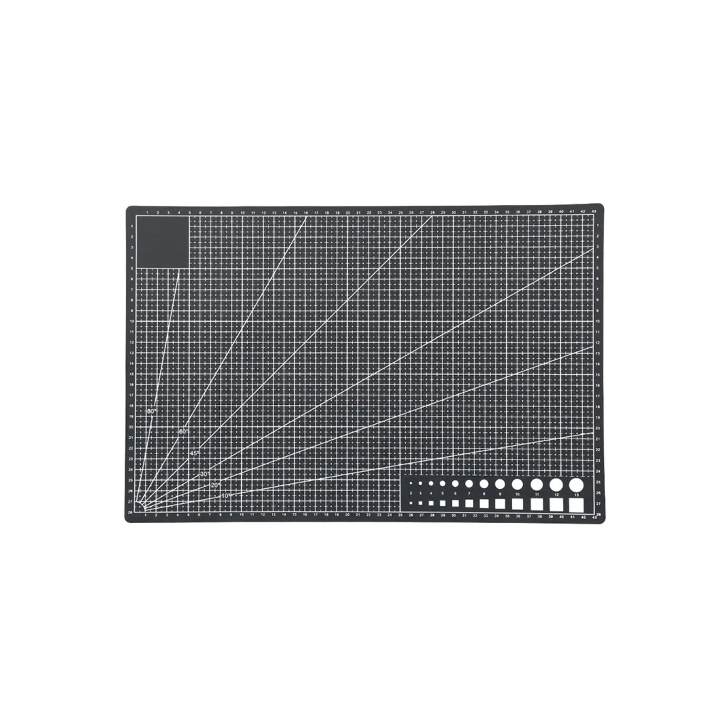 Skjærematte i sort. Kutt opp fliser, kontaktplast, papp eller papir uten og skade overflaten på bordet ditt. Skjærematten har tydelige guider for nøyaktig skjæring. Perfekt for hobby- og håndverksbruk.
