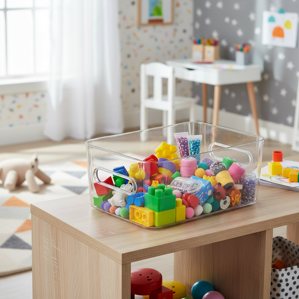 Den klare plasten gir maksimal synlighet av innholdet, samtidig som materialet er slitesterkt og laget for daglig bruk.