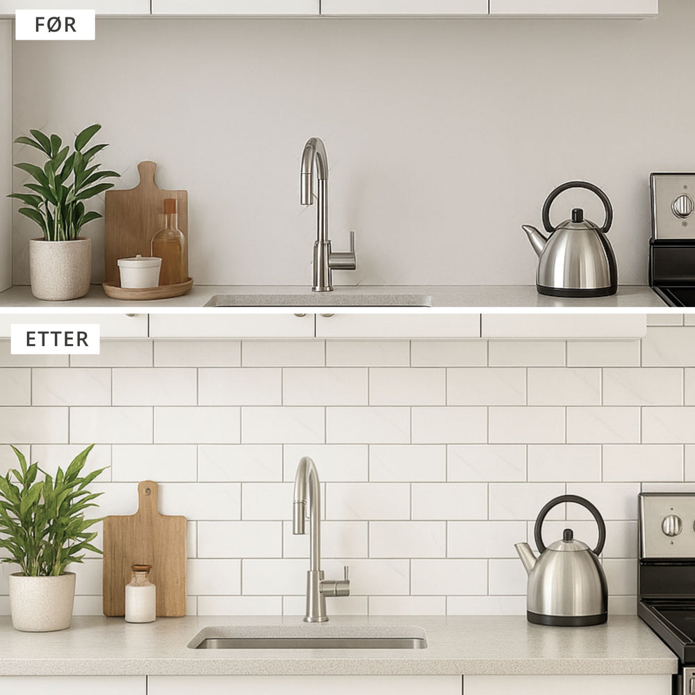 Er du lei av flisene på kjøkkenveggen? Eller kanskje på badet? Premium selvklebende veggfliser kan forvandle et rom på minutter!