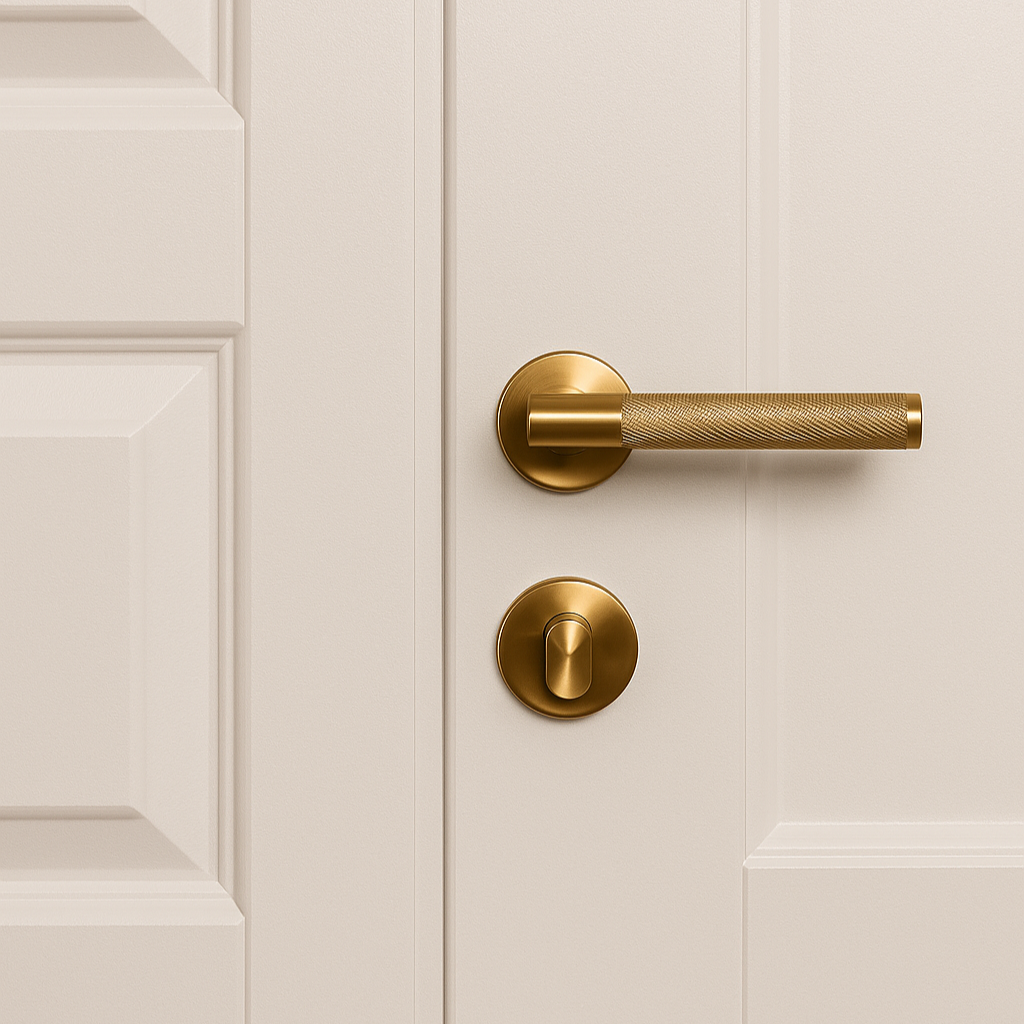 Stockholm dørhåndtak i børstet messing er de perfekte håndtakene for å gi ytterdøren din et luksuriøst preg. Dørhåndtakene har et moderne design som passer perfekt i nordiske hjem.