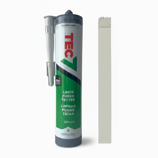 TEC7 er en kraftig og fleksibel MS Polymer som fungerer som fugemasse, lim og tettemasse på de fleste materialer. Den fester godt selv på fuktige overflater og kan brukes under vann, noe som gjør den ideell for både innendørs og utendørs prosjekter.