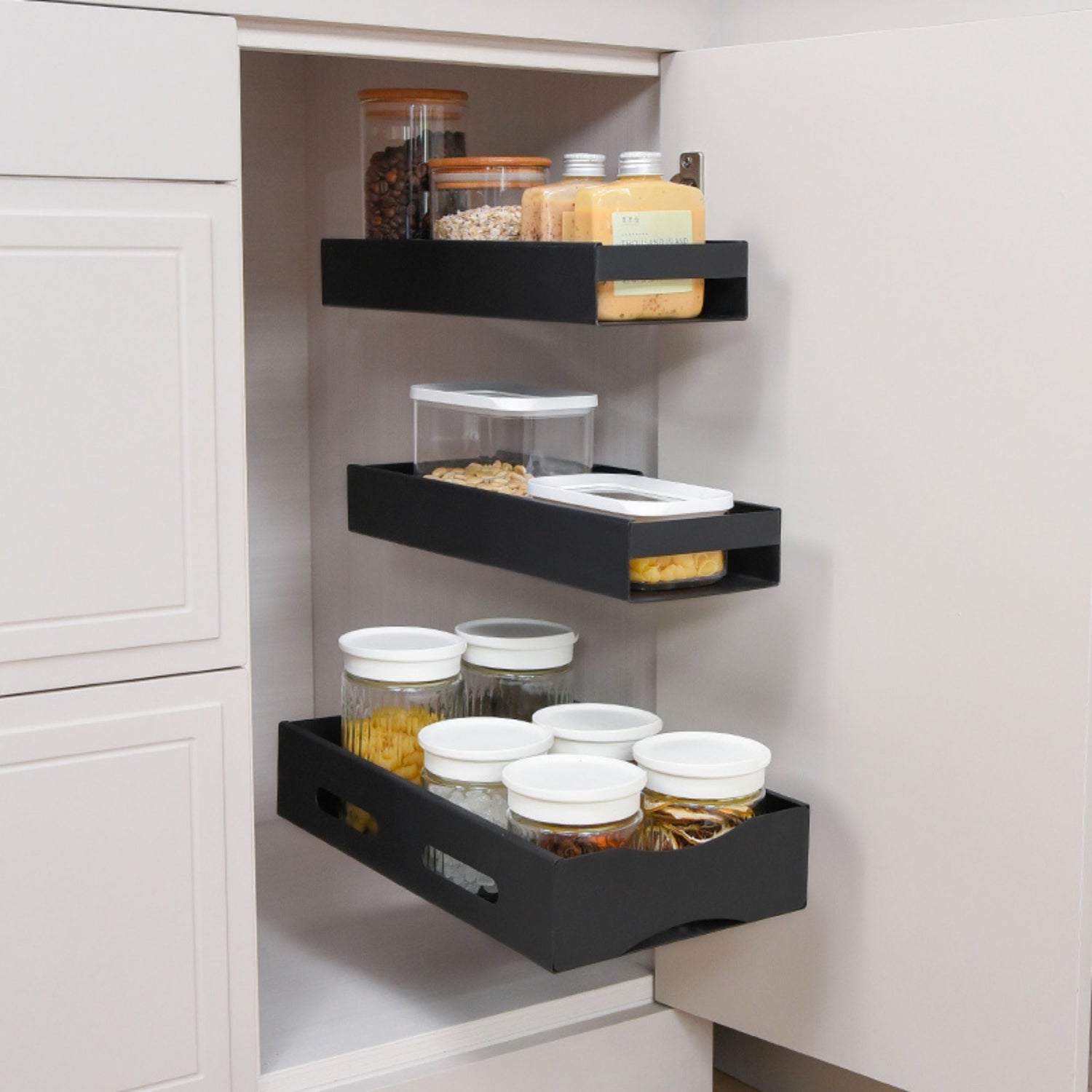 Sett med uttrekkbare hyller sort