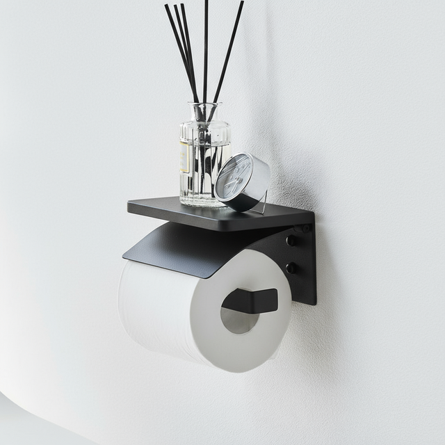 Veggmontert toalettpapirholder sort