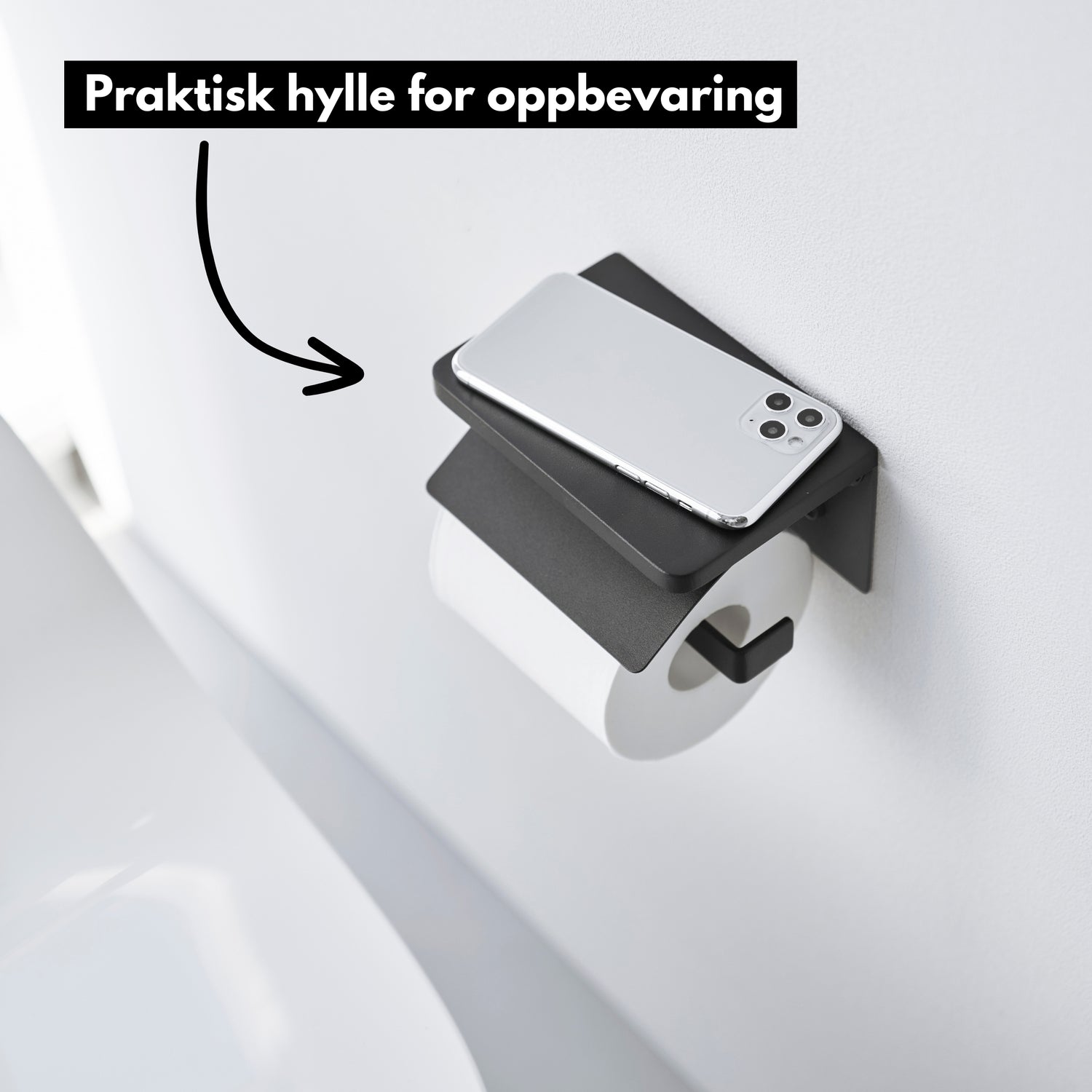 Veggmontert toalettpapirholder sort