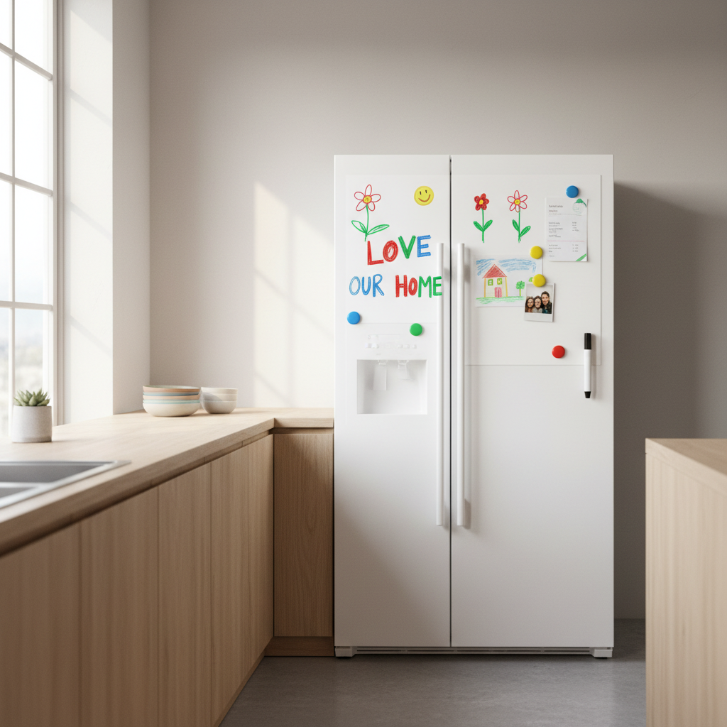 Gjør planleggingen enklere med praktisk whiteboardfolie med magnetfunksjon. Denne fleksible folien kan festes på vegg, skap eller dør og fungerer som en vanlig whiteboard.